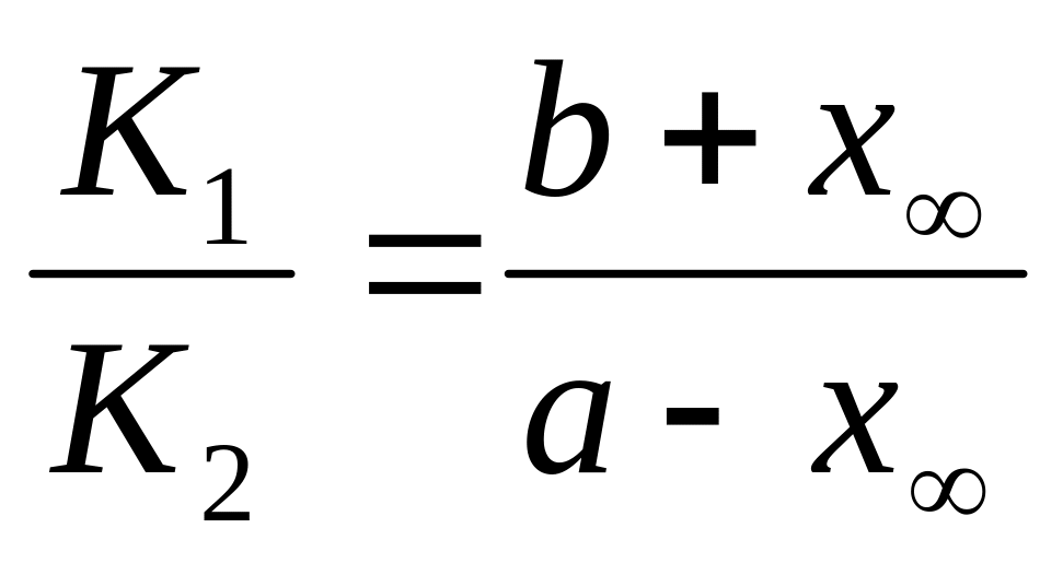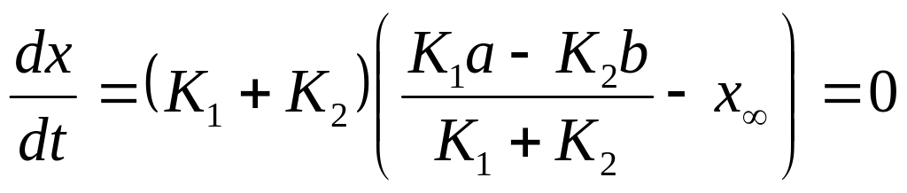 Для того, чтобы отдельно найти К1 и К2, надо рассматривать уравнение скорости в состоянии равновесия: