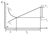Потенциал анықтаушы иондардың диффузия жылдамдығы электрохимиялық реакцияның жылдамдығынан аз болған жағдайда электрод бетінде таралуын сызба-нұсқа ретінде қарастыруға болады (сурет).