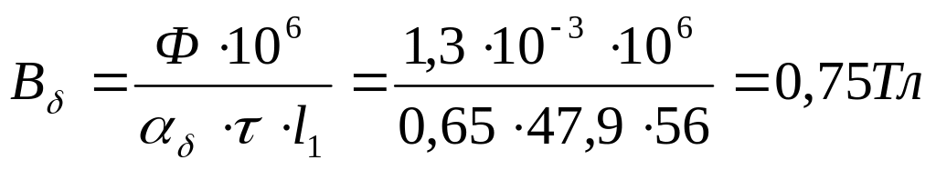 7.3 Магнитное напряжение (магнитодвижущая сила – МДС) в воздушном зазоре: