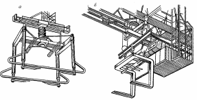 Для удобства выполнения работ по взятию пакетов пиломатериалов краном применяют специальные приспособления тросовые, портальные с поворотными кронштейнами, вилочные и др. рис. 5.71.