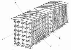 4 – рабочие площадки, проходы; 5 – формируемый сушильный пакет досок;
