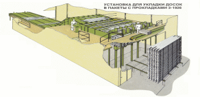 Рис. 5.76. Схема установки для укладки досок в сушильные пакеты: