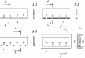 а – тип 1; б – тип 2; в – тип 3; г – шаблон-калибр для контроля установочной ширины ножей