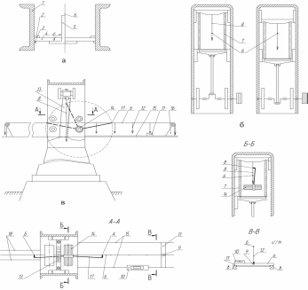 7 – пильная рамка; 8 – отвес из центра пильной рамки; 9 – отметки центра шаблона; 10 – уровень; 11 – шаблон; 12 – отвес на шаблон с оси 6; 13 – пилы; 14 – подающий валец; 15 – рельсовый путь; 16 – опоры; 17 – стрелка, жестко закрепленная на проверяемом вальце; 18 – ножи направляющего аппарата; А, Б, В – точки соприкосновения стрелки 17 с нитью продольной оси 6 и отвесом 8