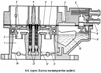 клапанды 8 оң жағына қысады. Сол кезде жанармайдың қосымша мөлшері жиклер 9 арқылы арнамен 10 жанғыш қоспаны байытып басты үнемдегіш жүйеге береді.