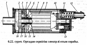 Ортадан серпігіш отын сорабы (6.22.сур.)сорабпен бір тұрқыда орналасқан электр қозғалтқышының көмегімен іске қосылады. Ол статордан 3, оның ішкі беті электр қозғалтқышы якорінің осінен 8 біршама ауытқулы, электр қозғалтқышы якорімен жалғастырылған цилиндрлі сеператордан 16, және сепаратор ішіне орналастырылған роликтерден 17 тұрады. Сепаратор мен роликтердің арасында сорабтың негізі 2 мен қақпағы 5 орналасқан.