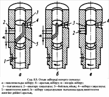 8.9. суретте тығынжылдың винттелеген жиегінің отын секциясының бір цикл жұмысындағы қалпы көрсетілген: