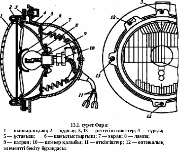2. Автомобильдерде қолданылатын фаралардың, астыңғы ффаралардың, артқы фонарьлардың құрылысын түсіндіріңіз?