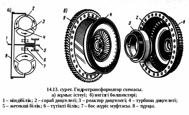 Гидромеханикалық трансформатор автомобильдің қозғалтқышы мен трансмиссияның арасына орнатылып, қозғалтқыштан берілген бұрылу моментін беріліс қорабының жетекші білігіне байланысты өзгертіп тұрады. Гидротрансформатор үш қалақты дөңгелектерден: ортадан тепкіш насостан, ортаға ұмтылғыш турбинадан және реактордан тұрады.