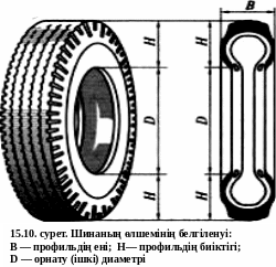 Мысалы: ЗИЛ-431410 автомобилінде 260R508, профиль ені – 260мм, орнату диаметрі – 508 мм; 280 – 508Р , профиль ені – 280 мм, орнату диаметрі – 508 мм , R – радиалды. МАЗ- жүк автомобилінде радиалды шина320R508 орнатылады.