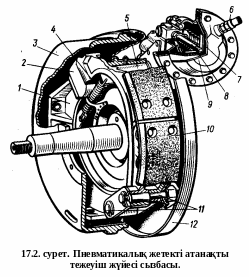 КамАЗ автомобилінде ажыратқыш жұдырықша мен тежеуіш қалыбының арасында болатын үйкелісті азайту үшін айналмалы ролик қойылады. Пневматикалық жетекті атанақты тежеуіш жүйесі құрылысына: