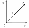 На рисунке показан процесс изменения состояния одного моля одноатомного идеального газа (U – внутренняя энергия газа; p – его давление). Как изменяются в ходе этого процесса объём, абсолютная температура и теплоёмкость газа?
