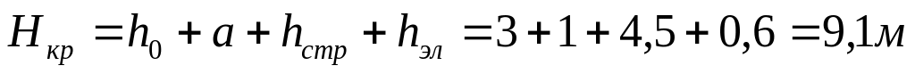 де: hо – перевищення опори елемента, що монтується над рівнем стоянки крана, м;