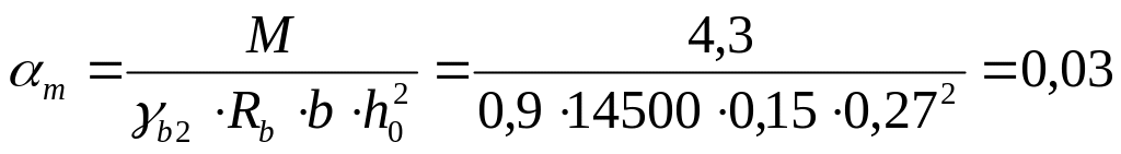 На негативний момент М= -4,3 кН·м перетин працює як прямокутне з розмірами 0,15 м х 0,30 м, тому: