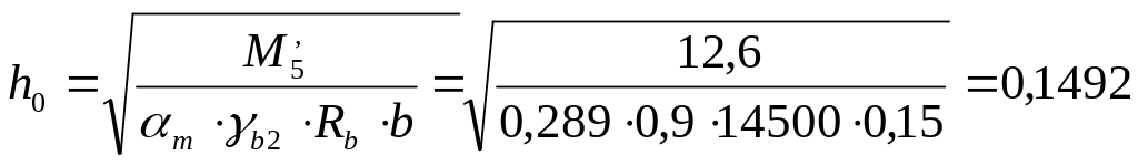 h0 = h – a = 0,30 - 0,05 = 0,25 (м);