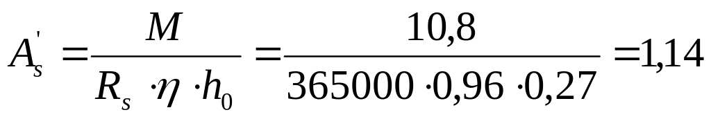 4) перетини на середніх опорах на негативний момент М=-10,8 кН·м перетин працює як прямокутне з розмірами 0,15 м х 0,30 м, тому: