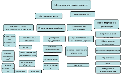 Из представленной схемы видна следующая иерархия субъектов предпринимательства. Первое - это деление на юридические и физические лица. Вторая - деление на коммерческие и некоммерческие организации.