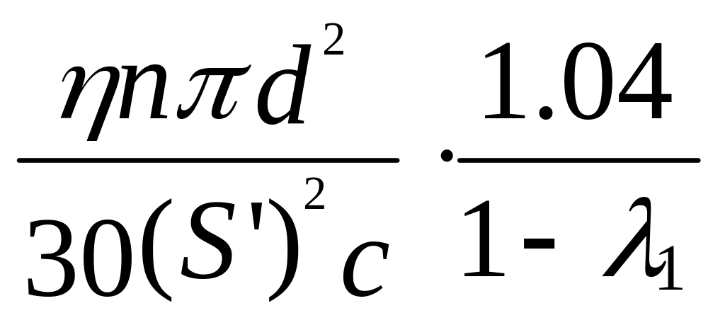 Если в формулу (1) подставить вместо ее значение n/30 учесть поправку на конечную длину подшипника (2) и принять во внимание, что