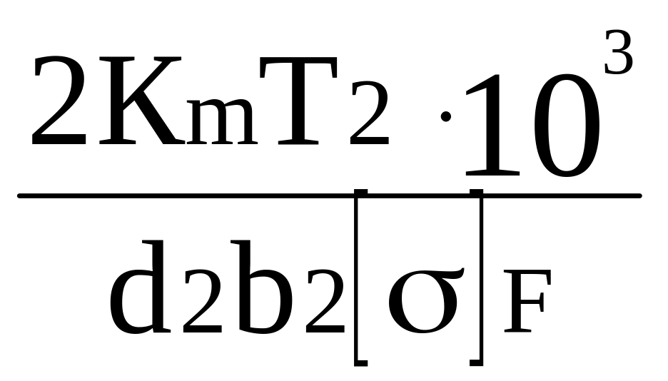 [σ]F- допускаемое напряжение изгиба материала колеса, [σ]F=256 Н/мм2.