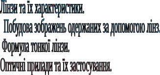 Тема. Лінзи та їх характеристики. Побудова зображень за допомогою лінз. Формула тонкої лінзи. Оптичні прилади та їх застосування.