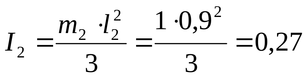 Стержень 1 представим в виде материальной точки. Момент инерции системы находим как сумма моментов инерции 2-х тел.