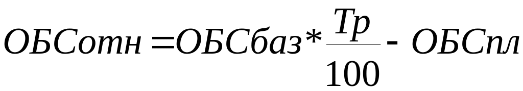где ОБСбаз, ОБСпл - среднегодовая стоимость нормируемых ОБС (средний остаток ОБС) соответственно в базовом и плановом периоде,грн.;