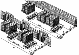 1.2. Несущие наружные стены толщиной 770 мм возводимых секций выполняются из керамических крупноформатных камней с облицовкой лицевым кирпичом, внутренние несущие стены толщиной 380мм из керамических камней, перегородки толщиной 120 и 250 мм - из керамических камней, межэтажные перекрытия - сборные из железобетонных плит. Высота типового этажа - 3,0 м.