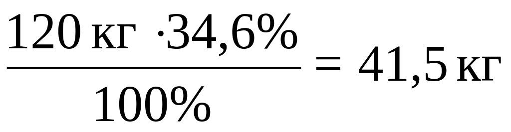 Поскольку содержание К2О в удобрении составляет 34,6 %, а всего вносится 120 кг удобрения, значит К2О: