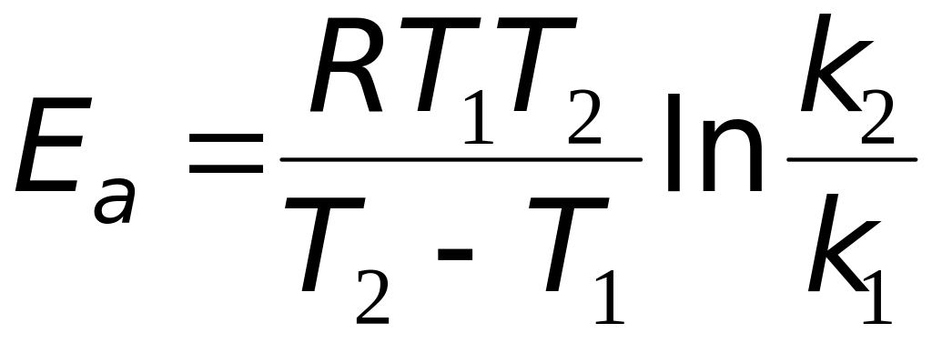 Энергию активации можно определить, измерив константу скорости при двух значениях температуры. Из уравнения Аррениуса следует