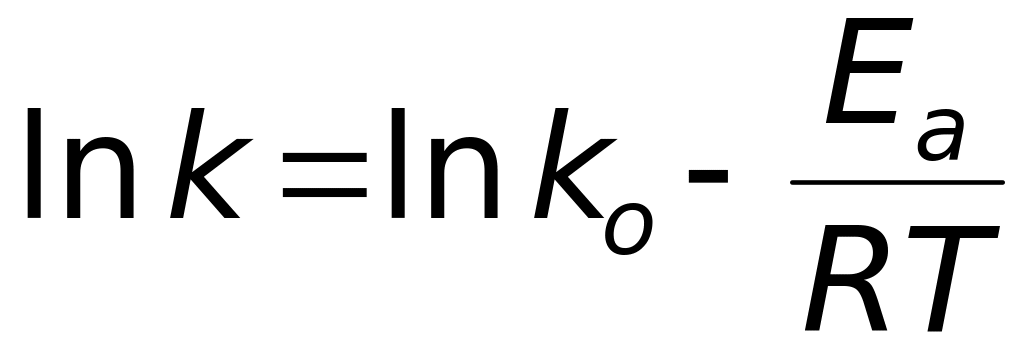 Для этого представляют экспериментальную зависимость логарифма константы скорости от обратной температуры в линеаризованной форме: