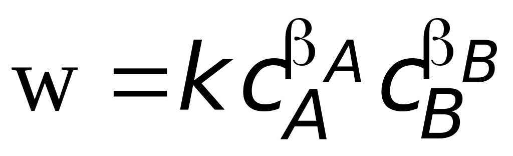 Зависимость скорости простой гомогенной реакции от концентрации исходных реагентов определяется при помощи основного постулата химической кинетики, или закона скорости, или закона действующих масс для кинетики.