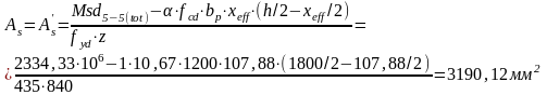 Т.к. условие соблюдается, то нейтральная линия проходит в полке и сечение рассматриваем как прямоугольное с размерами: b=bp=1200мм, h=lp=1800мм.