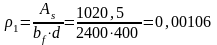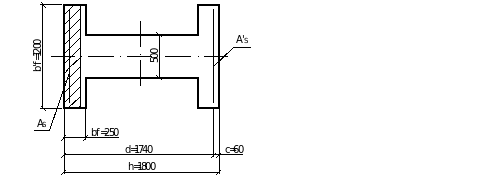 b=500мм, h=1800м м, bf= 1200м м, c.=60мм, d=h-c.=1800-60=1740мм