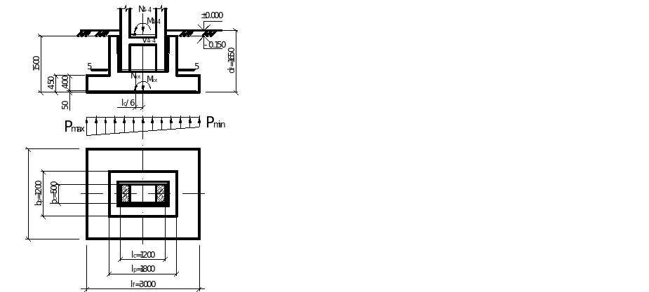 - •1.4.2Расчет сечения арматуры в направлении меньшей стороны подошвы фундамента