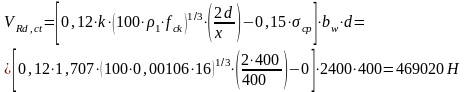 bw −минимальная ширина поперечного сечения элемента в растянутой зоне, bw=bf=2400мм