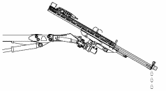 причини) обов’язково слід продути повітрям перфоратор та бурильні штанги від води. Передній кінець подавального пристрою необхідно нахилити донизу для того, щоби вода могла витекти з пристрою (рис.3.23).