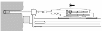 - перед початком і в процесі буріння щільно притискати буфер переднього торцю полозків подавального пристрою до породи. Для установки полозків слід використовувати циліндр висування подавального пристрою (рис.3.20, а);