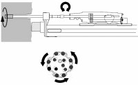- плавним переміщенням вперед перфоратора (без відскакування й ударів у люльку подавального пристрою);