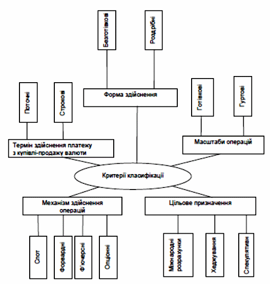 Рис. 13.1. Критерії класифікації валютних операцій.