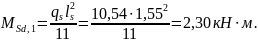 Изгибающий момент в крайнем пролете и на первой промежуточной опоре: