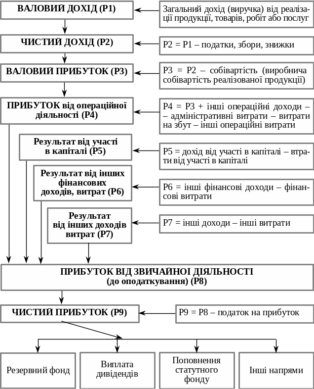 Рис. 15. Формування та розподіл чистого прибутку згідно з Положеннями (стандартами) бухгалтерського обліку