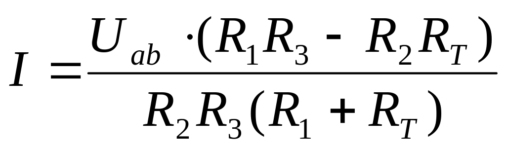 Схема неуравновешенного моста приведена на рисунке 1.2б. Равновесие моста обеспечивается при настройке в одной точке температурного диапазона измерения (обычно в его начале), а при разбалансе моста определяют ток в измерительной диагонали: