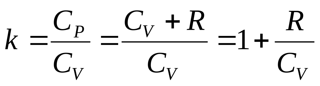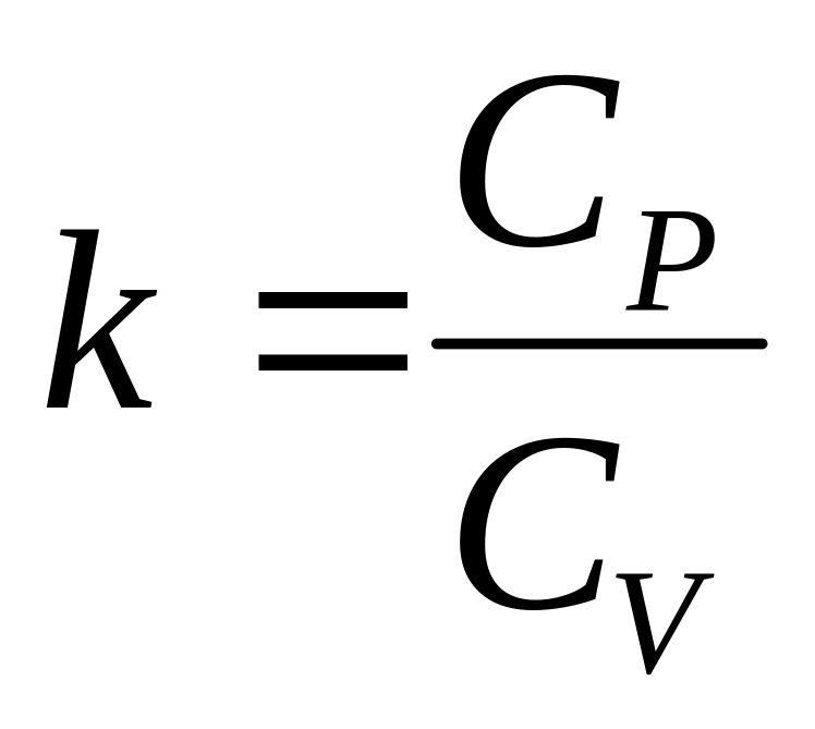 где k - показатель адиабаты, равный отношению изобарной теплоемкости CP к изохорной CV: