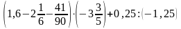 Упростите алгебраическое выражение 0,2(1,3x–0,45y)–0,04(4x+0,25y) и вычислите его значение при x=3,1 и y=–1,9