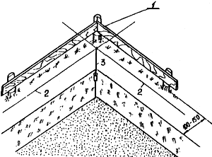 1 - доска обноски; 2 - проволочная чалка; 3 - отвес