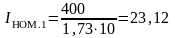 | 2. По силе длительного тока Iраб.макс1 ≤ Iном. | Iраб.макс1 = 23,58 А | Iном. = 400 А |