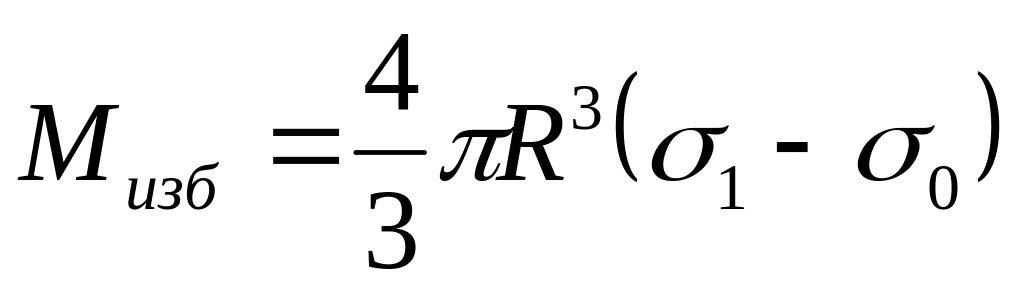Мизб можно записать через произведение объема шара 4/3 πR3, где R его радиус, на избыточную (эффективную) плотность σ1 - σ0