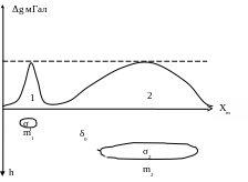 Рис.13. Локальная (1) и региональная (2) аномалии
