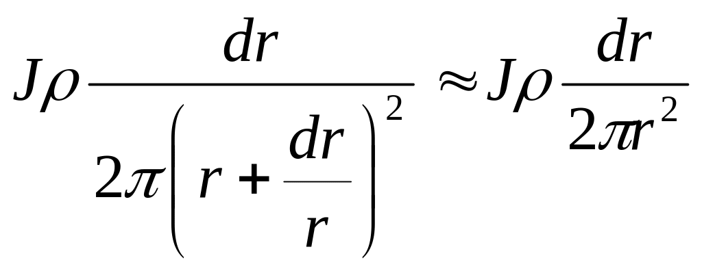 Приближенное равенство основано на том, что бесконечно малая dr и при возведении в квадрат и при умножении на конечную величину r дает в результате столь малые «добавки» к r2 , что ими вполне можно пренебречь.