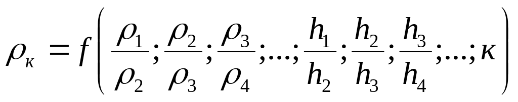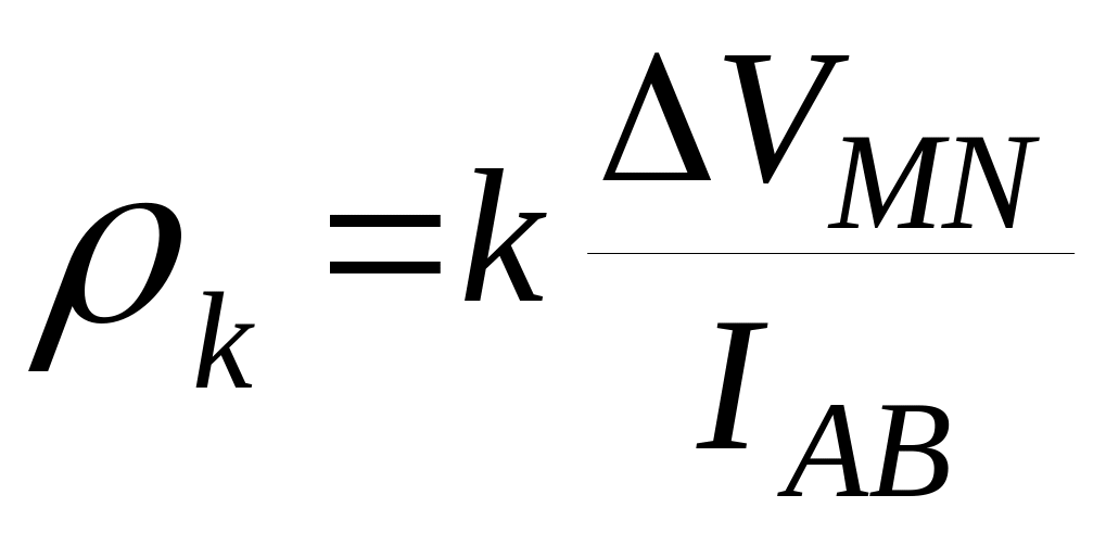 Все сказанное позволяет уяснить идею зондирования среды постоянным током, состоящую в том, что осуществляя серию измерений ΔVMN с разными все возрастающими АВ, мы получаем последовательность значений ρ, характеризующих электрическое сопротивление все более глубоких интервалов геоэлектрического разреза. Такое зондирование называют вертикальным электрическим зондированием ВЭЗ. Помимо ВЭЗ используют другие модификации рассматриваемого метода сопротивлений – ДЭЗ (дипольное электрическое зондирование), ЭП (электропрофилирование) и другие. Во всех этих модификациях основная задача – определение электрической характеристики среды – удельного электрического сопротивления ρ. Однако, что это за ρ? Это в общем случае не ρ1, не ρ2 и не ρ3, а некое ρк – кажущееся сопротивление, зависящее от k (то есть от геометрии 4хэлектродной установки ABMN - от расстояний АВ и MN.), помимо зависимости от этих реальных ρ1 , ρ2 и от толщин слоев геоэлектрического разреза. Таким образом, ρк можно определить как удельное электрическое сопротивление такой воображаемой однородной среды, в которой при тех же АВ и MN и при той же силе питающего тока в цепи АВ регистрируется та же разность потенциалов ΔVMN , что и в среде неоднородной. То есть ρк это сложная функция, зависящая от характеристик реального геоэлектрического разреза и от геометрии расстановки